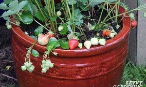 Mansikkaruukut tekevät upeista konttipuutarhoista monenlaisille kasveille.