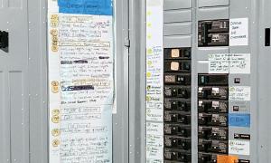 - Huomaa: onnettomuudet ovat harvinaisia, mutta kokeneet sähköasentajat yleensä eristävät itsensä työskennellessään huoltopaneelissa minimoidakseen mahdolliset iskut. Tämä tarkoittaa eristettyjen saappaiden käyttämistä ja seisomista eristetyllä, johtamattomalla lattiamatolla työskennellessäsi paneelissa. ÄLÄ KOSKAAN tee tätä työtä paljain jaloin tai sileissä jaloissa.