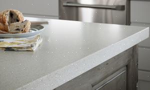 Corian, alkuperäinen kiinteän pinnan laskuri, on valmistettu noin 33 prosentin akryylihartsista (PMMA) ja noin 66 prosentista luonnollisista mineraaleista. Bauksiittijohdannainen, alumiinitrihydraatti (ATH), on yleisin mineraali. Mutta jos kuvittelet jotain sellaista näyttävän graniittihiukkasilta, se ei ole se. ATH on hieno, valkoinen jauhe, aivan kuten ruokasoodaa. Monet eri värit ja tyylit saavutetaan erilaisilla pigmenttien ja mineraalipölyn seoksilla.